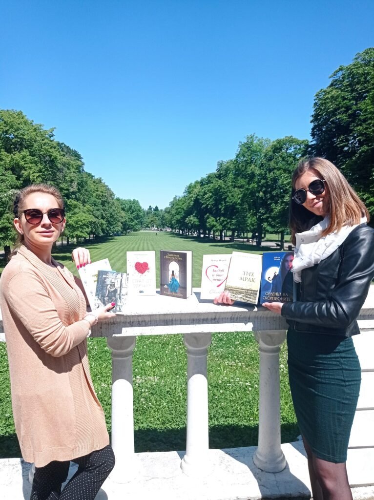 Част от кадрите на “Зелено четене” във Велито Търново. УЧЕНИЦИТЕ от Литературния клуб на СУ “Емилиян Станев” – Велико Търново помагаха на книгодарите да стигнат до новите си читатели през целия ден. Обиколките стартираха с парк “Дружба”, парк “Никола Габровски”, Институт “Конфуций”, парк “Марно поле”, кино “Искра”.